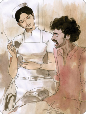 மருத்துவமனை சூழலில் எந்த விதமான புதிய மாற்றமும் இந்த மூன்று வருட காலத்தில் நிகழ்ந்திருப்பதாகத் தெரியவில்லை. இலை உதிர்க்கும் மரங் கள், துப்புரவுப் பணியாளர்கள், மருத்துவமனைத் தாதிகள் எல்லாம் அதே அதே. அப்போது திருமணம் ஆகாமல் சிவந்த நிறத்தில் ‘புன்னகை மன்னன்’ ரேவதியை ஞாபகப்படுத்தும் விதமாக இருந்த தாதிக்குத் திருமணம் ஆகிவிட்டதுபோலும். வயிறு மேடிட்டு இருந்தது. ”இந்த ஊசியை எல்லாம் கையில போடக் கூடாதுங்க. பவர் மருந்து இது. பின்னாடி காட்டுங்க… சின்னப் பையனாட்டம் ஊசி போட்டுக்கறதுக்கு இப்பிடிப் பயப்படறீங்களே”- அவளின் இனிமையான குரல் மூன்று வருடங்களுக்குப் பின் ஞாபகம் வந்தது.