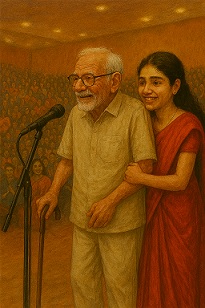தடியை ஊன்றிக் கொண்டு நிற்பதற்கு சிரமப்பட்ட தாத்தா வீழ்ந்துவிடாமல் அமிர்தவர்ஷினி பிடித்துக்கொள்ள, பத்திரிகையாளர்கள் வானொலி தொலைகாட்சி ஒலி/ ஒளிப்பதிவாளர்கள் தங்கள் கடமையை செய்யத் தயாரான நிலையில் பிரதம அதிதி தாத்தாவுக்கு பொன்னாடை போர்த்த மண்டபம் மகிழ்ச்சியை மறுபடியும் கரகோசமாய் பொழிந்தது. அதைத் தொடர்ந்து பொற்கிழியும் விழாவுக்கான நினைவுக் கேடயமும் வழங்கப்பட்டது. தாத்தாவிடமிருந்து அனைத்தையும் வாங்கிக் கொண்ட அமிர்தவர்ஷினி நிற்பதற்கு மிகவும் சிரமப்பட்டத் தாத்தாவை மறுபடியும் நாற்காலியில் அமரவைத்தாள். அந்த சந்தர்ப்பத்தில் ஏற்பட்ட மகிழ்ச்சியில் அமிர்தவர்ஷினிக்கு கண்களில் ஆனந்த கண்ணீரே வந்துவிட்டது, வயது காரணமாய் நிற்க முடியாத தாத்தாவின் அருகே ஒலிவாங்கியைக் கொண்டு சென்று ஓரிரு வார்த்தைகள் பேசச் சொன்னபோது..