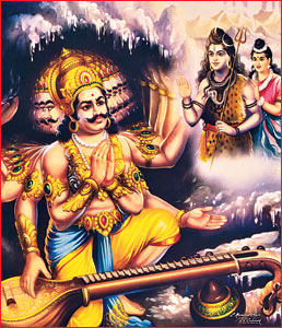ராவணனின் தாயார் சோகமாக அமர்ந்திருந்தாள். அவள் தினமும் வழிபடும் ஆத்மலிங்கம், ஆதிசேஷனின் சுவாசம் வழியே பாதாள லோகத்துக்குச் சென்று விட்டது. அந்த சோகத்தில் இருந்தவள், மகன் ராவணனை அழைத்தாள். அவனிடம் நடந்ததை விவரித்து, ”உடனே கயிலாயம் சென்று, உனது சாம கானத்தால் சர்வேஸ்வரனை மகிழ்வித்து, அந்த ஆத்மலிங்கத்தைப் பெற்று வருவாயாக!” என்றாள்.