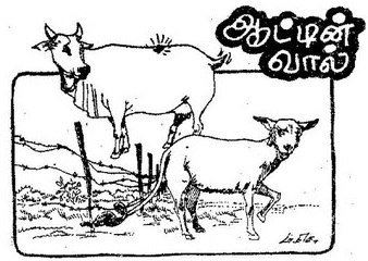 ஆடு முன்பெல்லாம் முள் வேலிப் பக்கத்தில் போய் மேயும். அந்த வேலியைத் தாண்டிப்பாயும் பழைய நினைவோடு இப்போதும் வேலியைத் தாண்டியது. இப்போது வால் வேலியில் அகப் பட்டுக் கொண்டது அதை மெல்ல எடுப்பதற்குள் பெரும்பாடாகி விட்டது. “ஏண்டா இந்தவாலை வாங்கிக் கொண்டோம்?” என்று முணுமுணுத்தது.