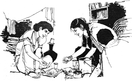“அதுக்கெல்லாம் நேரமில்லே. இப்ப முதல்ல நகைக் கடைக்குப் போய் உன் அம்மாவின் வளையல், காசு மாலை, கம்மல் அத்தனையும் வித்து. காசாக்கிடணும். தங்கம் நல்ல விலை போகுதாம். அப்புறம் இந்த ஊர்ல நம்ம உறவுக்காரப் பையன் ஒருத்தன் எலக்ட்ரிக் ஆபீஸ்ல வேலை செய்யறானாம். உன் அழகுக்கு ஏத்த பையனாம். அம்மா சொல்லிட்டுப் போயிருக்கா, உன்னை அவனுக்குத்தான் கட்டிக் கொடுக்க ணும்னு. அவன் விலாசம் கேட்டு வாங்கி வச்சிருக்கேன்.”