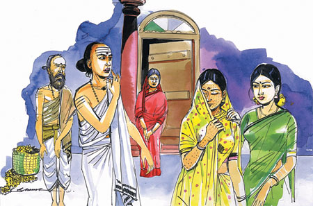 எல்லோரும் திடுக்கிட்டார்கள். ‘‘ஐயா! நீங்கள் சொல்வது தவறு. இவள் உங்கள் மைத்துனி. உங்கள் மனைவியும் இவளும் ஒரே ஜாடையில் இருப்பதால், நீங்கள் தடுமாறுகிறீர்கள். உண்மையில் அவள்தான் உங்கள் மனைவி!’’ என்றார்கள். தேவசர்மா இதை ஏற்கவில்லை.