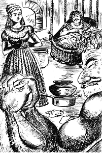 “பெரியவரே! உங்களால் ரொட்டியைத் தின்ன முடிய வில்லை என்றால், அதை மெதுவாய்ச் சொன்னாலென்ன? தொட்டிற்பிள்ளையை எழுப்பிவிடுவீர்கள் போலிருக் கிறதே! அதோ விழித்துவிட்டானே!” என்று கவலைப் படுவது போல் பேசினாள், ஊனாக்.