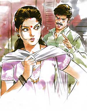 “நீ சும்மா இரு. என் பொண்டாட்டிய தொட்ட இந்தக் கம்னாட்டிகிட்ட என்னை பொறுமையா போகச் சொல்றியா? டேய், சாவடிச்சிடுவேன்.”