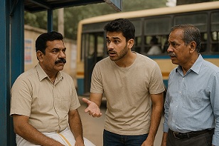 இளைஞன் : என் பேரு ராஜா.. இவுரு எங்க மாமா நடராஜன்.. நாங்க பாரதிநகர் போகணும் பஸ் எப்ப வரும்?