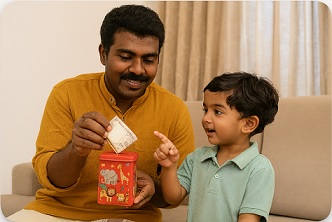 “எல்லாம் ஒரு காரணமாகத்தான் அப்பா! இந்த உண்டியலிலேயும் இனிமே காசு போடனும் சரியா?”