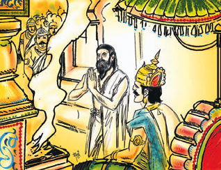 “”அரசே! எங்களை மன்னித்து விடுங்கள். கள்வனைத் தேடிச் சென்றபோது வழியில் ஆஸ்ரமத்தில் யோகியைக் கண்டு விசாரித்ததில் அவரும், “ஆம் இவ்வழியே ஒருவன் ஓடியதைப் பார்த்தேன்’ என்றார். யோகி உண்மை விளம்பியாச்சே அவர் சொன்னது சரியே என மேலும் வேகமாகச் சென்று இவரைப் பிடித்து வந்தோம்!” என்றனர்.