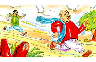 நம்முடைய திட்டத்தை முன்கூட்டியே தெரிந்துகொண்டு விட்ட எவனோ ஒருவன் தான், இப்படி இங்கிருப்பவர்களையெல்லாம் ஏமாற்றிப் பண மூட்டையோடு நழுவிக்கொண்டிருக்கிறான் எனச் சட்டென உணர்ந்தான் எத்தன். அவ்வளவுதான், பண மூட்டையோடு நழுவும் அவனை விரட்டிப் பிடிப்பதென முடிவு செய்தான்.