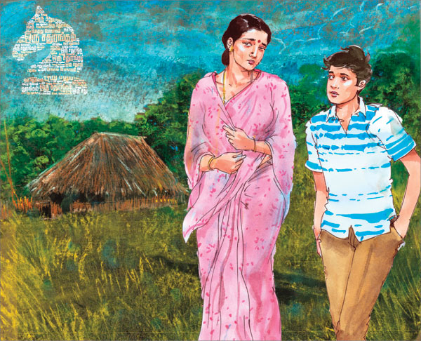 ”இங்கே மழை ஜாஸ்தி பெய்யலைபோல…” – முன்னால் உலர்ந்து கிடக்கும் ரோட்டைப் பார்த்துக்கொண்டு சொல்கிற குரல், ஹாரன் சத்தத்தோடு கேட்கையில், ஆட்டோ ஒரு வேகத் தடையில் ஏறி இறங்கியது. வலது பக்க வேப்ப மர வரிசையின் பின்னால் ஏதாவது பிள்ளையார் கோயில் இருக்க வேண்டும். ‘புல்லாங்குழல் கொடுத்த மூங்கில்களே…’ பாட்டு கேட்டது. ‘புருஷோத்தமன் புகழ் பாடுங்களேன்…’ என்று அடுத்த அடியை மனம் பாடியது. பஸ் ஸ்டாப்பில் நின்றுகொண்டு இருக்கிற குடும்பத்தைப் பார்த்ததும் தனுக்கோடி சித்தப்பா மாதிரி இருந்தது. எனக்குத் தெரியாமல் தனுக்கோடி சித்தப்பா வந்து, தாயம்மா அத்தை யைப் பார்த்துவிட்டுப் போகிறாரா என்று தோன்றியது. இப்படி ஏதாவது கிறுக்குத்தனமாக எல்லாம் தோன்றுவது எல்லாம் எனக்குப் புதிதா என்ன?