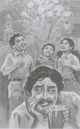 போதை சற்று ஏறி இருந்தாலும், அவரது முகம் கவலை நீங்கியதாக இல்லாமல் பழையபடியே இருந்தது. தீபாவளிக்கு இன்னும் சில நாட்களே உள்ளன. எவரிடம் கடன் கேட்பது என்ற சிந்தனையில் இருக்கையை விட்டு எழுந்தார்.
