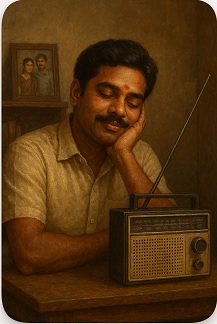 பாடல் ஒலி அவரை அந்த நிழல்மயமான காலத்துக்குள் மீண்டும் இழுத்தது — இரவு நேரம், இருவரும் மெல்ல பேசிச் சிரித்த அந்தக் காட்சிகள்; தொலைவில் குழந்தைகளின் சத்தம், அவள் அன்பும் கவலையும் — ஒவ்வொரு ஒசையும் மனதில் பழைய திரைப்படத் துளி போல உயிர்பெற்றது.
