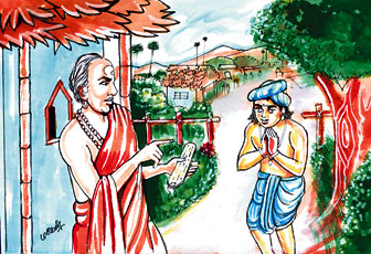 அதைக் கேட்ட ஆசிரியர், தம் கையில் இருந்த பிரம்பைக் கீழே வைத்தார்; சிறுவனாகிய திம்மரசை நோக்கினார். “”சிறுவனே! உன் குறிக்கோள் மிகவும் உயர்ந்தது. அது எல்லாருடைய உள்ளத்திலும் உண்டாகிற அழுக்கில்லாத ஆசை. இங்குக் கிடக்கும் பனையோலைகளே உனக்குப் பெருவாழ்வளிக்கும் பொன்னேடுகள். இப்பனையோலையில் எழுதி தருகிறேன். நீ படித்துக்கொள்!” என்று கூறினார்.
