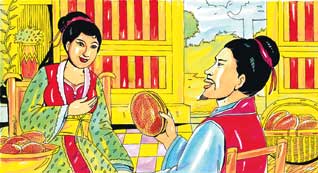 அவர்களை நன்றாக உபசரித்துக் கொண்டு இருந்தாள் ஓர் அழகி. அவளுக்கு வயது 20 இருக்கும். அவள் லியாங்மேவைப் பார்த்தவுடன் எழுந்து வந்து தடபுடலாக உபசரித்தாள். பின்னர் அவனுடைய கழுதையைப் பார்த்தவுடன், “”வீட்டின் பின்பக்கமாகக் கட்டிவிட்டு வந்து விடுங்கள். இங்கே நான் மட்டும் தான் தனியாக இருக்கிறேன். ஒரு வேலைக்காரன் கூட இல்லை. எனவே தயவு செய்து நீங்களே உள்ளே கழுதையைக் கொண்டு கட்டி விடுங்கள்!” என்று தேன் ஒழுகக் கூறினாள். லியாங்மே அவ்வாறே செய்தான். எல்லாரையும் அவள் உபசரித்தது போலவே அவனையும் உபசரித்தாள். அவன் யார், எங்கிருந்து வருகிறான், அவன் எதற்காக வந்திருக்கிறான் என்றெல்லாம் அவள் கேட்கவில்லை. அவன் ஏதோ சொல்ல வாயெடுத்த போது முதலில் சாப்பாடு, பிறகு ஓய்வு, அதன் பின் மீதியைப் பேசலாம் என்று கூறினாள்.