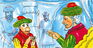 அந்தக் குரங்கை நேர்முகத் தேர்விற்காக அரசர் வரச் சொன்னார். அக்குரங்கு நல்ல கம்பீரமாக உடையணிந்து குதிரைமேல் ஏறி, பாக்தாத் தெருக்களில் ஊர்வலமாக வந்து அரசரைச் சந்தித்தது. அரசவையில் அதனிடம் நிறைய கேள்விகள் கேட்கப்பட்டன. அது எல்லாக் கேள்விகளுக்கும் அறிவுப்பூர்வமான சரியான விடைகளைக் கூறியது. அரசருக்கு அதை மிகவும் பிடித்து விட்டது. ஆனால், மந்திரிகள் தடுத்தனர்.