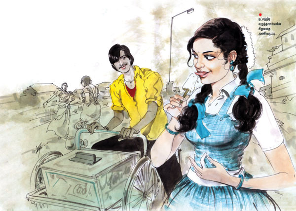 ”நீ என்னிய லவ் பண்றியா?’ – குல்பி ஐஸின் மேல் நுனியைப் பல்லால் சுரண்டிச் சுவைத்துக்கொண்டு இருந்த ஹேமா கண்களை விரியச் செய்தபடி கேட்டாள்.