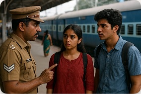 அதற்குள் ரயில்வே காவல்துறையினர் இவர்களை நெருங்கி வந்தனர். அவர்களுள் ஒருவர் தன்னிடமிருந்த லத்தியைக் கொத்தையனை நோக்கி நீட்டியபடியே அதட்டும் குரலில், “யார்டா நீ?” என்று கேட்டார்.