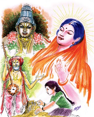 அதன் பிறகு குழந்தையின் மனதில் இனம் புரியாத சந்தோஷம் ஏற்பட்டது. அவர் சொல்லித் தந்த அஷ்டாக்ஷர மந்திரத்தை எப்போதும் சொல்லியபடியே இருந்தாள். தோழிகளுடன் விளையாடச் செல்லவில்லை. மனதில் எப்போதும் இறைவன் நாமம் ஒலித்துக் கொண்டிருந்தது. மறுபடியும் அந்தப் பெரியவரைக் காண வேண்டும் என்று மனது ஆசைப்பட்டது. பத்து வயதாகி விட்டதால், உடனே இவளுக்குத் திருமணம் செய்ய வேண்டும் என்று பெற்றோர் வரன் தேடி னர். எப்போதும் மௌனமாக இருப்பதால் இவளை ‘பைத்தி யம்!’ என்று ஊரார் பேசத் தொடங்கினர்.