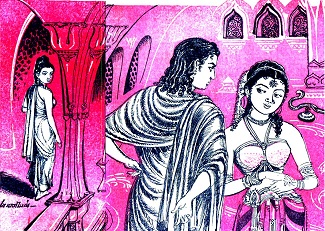 அந்த இளம் பிக்ஷுணி நாட்டியக் கணிகையர்கள் வாழும் அந்த வீதியை அடைத்தது. அவளைத் தொடர்ந்து வந்த பிக்ஷுவுக்கு ஆச்சர்யத்தை அளித்ததோ இல்லையோ பூதுகனுக்குச் சிறிது ஆச்சரியத்தைத்தான் அளித்தது. இத்தகைய இளம் பருவத்திலுள்ள ஒரு பிக்ஷுணி இந்த வீதியை அடைந்தது தனக்காகக் காத்திருக்கும் தன் காதலனை அடைய வேண்டும் என்பதற்காகத்தான் இருக்க வேண்டும் என்ற தீர்மானத்துக்கு வந்து விட்டான் பூதுகள். அவனுக்கு இவ்வளவு நேரமும் உளவு பார்ப்பதில் இருந்த ஆர்வமும் சுவாரசியமும் குறைந்து விட்டது. ‘இதென்ன? சகஜம்! இந்தப் பருவத்தில் இதை யார் கட்டுப்படுத்த முடியும்?’