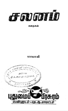 – சலனம் கதைகள், முதற் பதிப்பு: நவம்பர் 1956, புதுமைப் பிரசுரம், பெண்ணாடம், தெ.ஆ.மாவட்டம்.