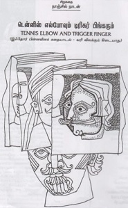 தோளில் கனமான ஜோல்னாப் பை தொங்கியது, கோணங்கி ஸ்டைலில். அதனுள் இருந்து தண்ணீர்ப் போத்தலின் மூடி எட்டிப் பார்த்தது. வெளியே தண்ணீர் குடித்தால் டைபாய்ட், மஞ்சக் காமாலை, வாந்தி பேதி வர வாய்ப்பு இருந்தது. என்ன நோய் வளம் இல்லை இந்தத் திரு நாட்டில்?
