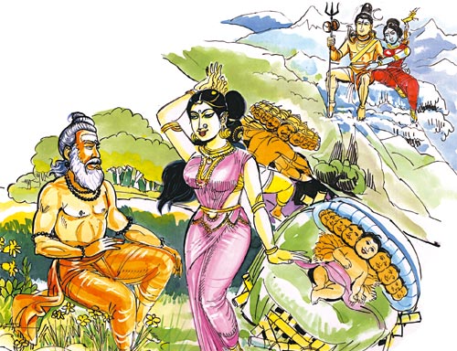 ‘‘தவறை நீ உணர்ந்தால் மட்டும் போதாது. அதன் பலனை அனுபவிக்கவும் வேண்டும். எனவே, அதன் கடுமையை வேண்டுமானால் சற்றுக் குறைக்கிறேன்!’’ என்று கூறிய விச்ரவசு, குழந்தையை அழகான ஆண் பிள்ளையாக மாற்றினார். பத்துத் தலைகள் கொண்ட தால், ‘தசக்ரீவன்’ என்றும் பத்து கழுத்துகளைக் கொண்டதால், ‘தசகண்டன்’ என்றும் அந்தக் குழந்தை அழைக்கப்பட்டான். விச்ரவசுவைக் காண ஒரு முறை குபேரன் வந்தபோது தசக்ரீவனை அழைத்த சுமாலி, ‘‘இதோ இருக்கும் குபேரன் உன் அண்ணன். கடுமையாக தவம் செய்து, பிரம்மாவிடமிருந்து பல வரங்கள் பெற்றுள் ளான். அது போல நீயும் கடுமையாக தவம் புரிந்து புகழ் அடையலாமே!’’ என்றான்.