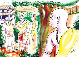 “”எவரும் எங்கள் மடத்தை நாடி வருவதில்லை. அங்கு இருப்பதோ, ஒரு சில பிக்ஷுக்கள் தான். அவர்களும் கூட, சிரத்தையின்றி ஏனோ தானோவென்று தம் கடமைகளை ஆற்றி வருகின்றனர். இது எதனால் ஏற்பட்டது? இதற்கு என்ன விதமாய்ப் பரிகாரம் காணலாம்? இதற்கு விடை தேடித்தான் தங்களைக் காண வந்துள்ளேன்.”