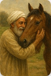 பெரியவர் பாபா பாரதி , நகரத்து வாழ்க்கை பிடிக்காமல் தம் வாழ்நாள் சேமிப்பைக் கொண்டு தமது கிராமத்தின் எல்லையில் ஒரு சிறிய கோயிலையும் வசிப்பிடத்தையும் கட்டிக் கொண்டு தம்முடைய எஞ்சிய வாழ்நாளை வாழ்ந்து வந்தார். அந்த வசிப்பிடத்தில் அவருடைய உற்ற துணையான குதிரைக்கு ஒரு லாயத்தையும் அமைத்தார். ஆம் . ஒற்றை ஆளான அவருக்கு பேச்சுத் துணை கோயிலில் எழுந்தருளி இருக்கும் தெய்வமும் அவருடைய குதிரையும் தான். அவருடைய குதிரை மிகவும் அழகான குதிரை. ஒரு முறை அதனைப் பார்த்தவர்கள் , மீண்டும் அதனைப் பாரத்து விட்டுத் தான் செல்வார்கள். அந்த குதிரையை பாபா , அன்புடன் பராமரித்து வந்தார். நேரத்திற்கு தீவனம் அளித்து தண்ணீர் கொடுத்து அதற்கு தினவு எடுக்கும் போதெல்லாம் தடவிக் கொடுத்து அன்பு காட்டி வந்தார்.