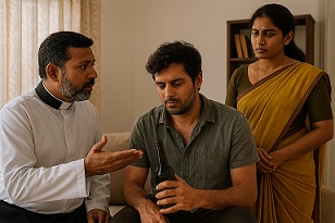விமலாவிற்கு ஆனந்தம் தாள முடியவில்லை. தனது பிராத்தனை வீண் போகவில்லை. இத்தனை நாளும் எனது பிராத்தனையைக் கேட்ட கடவுளே நேரில் எனது வீடு தேடி வந்து எனது குடிகாரக் கணவரை மனம் மாற்றியுள்ளார்.