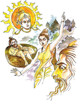 ‘செய்யாத தவறுக்குத் தண்டனை அனுபவித்துக் கொண்டிருக்கிறேன் நான். இதில், குஷ்டரோகத் தால் பாதிக்கப்பட்ட கால்களால், உதையும் வேறு வாங்க வேண்டுமா?’ என்று வெகுண்டார். கௌசி கரை சுமப்பது, அவரின் மனைவி சைப்யை என்பதை அறிந்ததும், மாண்டவ்யரின் கோபம் அவள் மேல் திரும்பியது. ”சூரிய உதயத்தின்போது, நீ மாங்கல்யத்தை இழப்பாய்” என்று சபித்தார்.