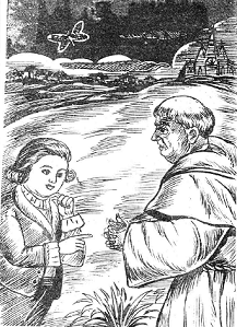 இந்த வார்த்தைகளை அவன் கூறியவுடன், பாதிரியார் அவன் முன்பு முழந்தாளிட்டுக்கொண்டு, ஆனந்தக்கண்ணீர் பெருக்கினார்; தமது ஆன்மா கடைத்தேறிவிடும் என்று அவர் மகிழ்ந்தார்; ஏனென்றால், கடவுள் நம்பிக்கையுள்ள ஒருவனை அவர் கண்டுவிட்டார்! பிறகு, அவர் அக்குழந்தை யிடம் தம் வரலாறு முழுவதையும் சொன்னார். தமது செருக்கு, தீவினை, தேவசிந்தனை முதலியவைகளையும், தேவ தூதர் வந்ததையும், தமக்காக இறை நம்பிக்கை கொண்ட ஒருவர் பிரார்த்தனை செய்து ஆதரவு கொடுத்தால்தான் தாம் முக்தியடைய முடியும் என்று தேவதூதர் தெரிவித்ததையும் விளக்கமாகக் கூறினார்.