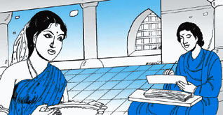 காவியத்தை எழுதி முடித்த அவருக்கு உலக நினைவு வந்தது. தன் அருகே பெண்மணி ஒருத்தி நிற்பது அவருக்குப் புரிந்தது.