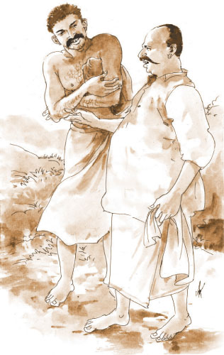 ”ஏய் செவனாண்டி… வா! யாவாரம்எல்லாம் முடிஞ்சு வீட்டுக்குப் போற யாக்கும்? என்னா, வெறும் சாக்கை சுருட்டிட்டுப் போற?”