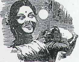 “அப்படியா!” – என்று கொண்டே ஸ்ரீதர் டெலிபோன் இருக்கும் இடத்துக்குப் போய் கிராமத்துக்கு ஒரு “ட்ரங்க் கோலை” “புக்” பண்ணிவிட்டுச் சாப்பாட்டு மேசையிலமர்ந்து, சிறிது சாப்பிட ஆரம்பித்தான். ஆனால் கையும் வாயும்தான் சாப்பாட்டோடு சேர்ந்து நின்றனவல்லாமல், மனமென்னவோ பத்மாவின் பின்னாலே தான் போயிற்று. அவள் தங்க மேனியும் தளிரிடையும் மனத்திரையில் தோன்றின.