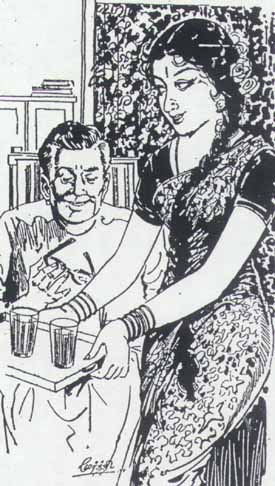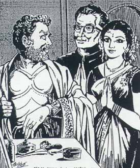 சுரேஷ் “நான் பெண் பார்ப்பது இருக்கட்டும். முதலில் முட்டைக் கோப்பியைக் குடி. இதோ சுப்பையா கொண்டு வந்து வைத்திருக்கிறான். நேற்று நாடகத்தில் நடித்த களைப்பிற்காக இரண்டு முட்டை போட்டு விசேஷமாகத் தயாரிக்கப்பட்டிருக்கிறது. உனது அம்மா நேற்று உத்தரவிட்டாளாம்” என்றான்.