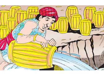“தன்னிடம் இருக்கும் இருபத்தைந்து பீப்பாய் எண்ணெயைப் பதுக்கி வைத்தால் நிறைய லாபம் கிடைக்கும்!’ என்று நினைத்தான் வணிகன். உடனே வேலைக்காரனை அழைத்து, “”கடையில் இருக்கும் மண்ணெண்ணெய் எல்லாவற்றையும் இன்றிரவு நம் தோட்டத்தில் பள்ளம் தோண்டிப் புதைத்துவிடு. யாருக்கும் தெரியக் கூடாது!” என்றான்.