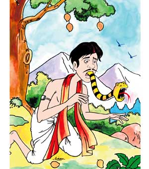 வேதனை தாங்க முடியாத அவன், “”கொடியவனே! நான் உனக்கு என்ன தீங்கு செய்தேன்? ஏன் என்னை இப்படிக் கொடுமைப்படுத்துகிறாய்? இதற்குப் பதில் என்னை ஒரேடியாகக் கொன்றுவிடு. உன்னைச் சந்தித்த இந்த நாளே என் வாழ்நாளில் கொடியநாள். மீண்டும் உன் முகத்தை நான் பார்க்கவே கூடாது…” என்று புலம்பிக் கொண்டே அழுகிய மாம்பழங்களைச் சாப்பிட்டான் அவன்.