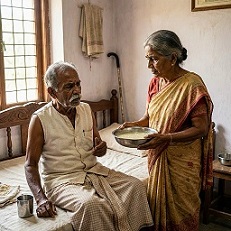 சாதரண குடும்பம். உதவிக்கு ஆள் போட்டுக்கற அளவுக்கு வசதியின்மை. அவரைப் பார்த்துக்கொள்ளும் முழுப் பொறுப்பும் மனைவி கமலாவின் தோள்களில் விழுந்திருந்தது.