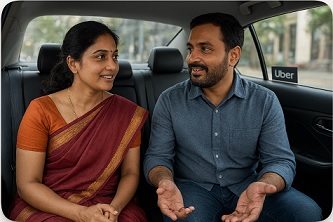 உபர் டாக்ஸி அவருடைய பேச்சில் கலந்து கொண்டு நிதானமாக ஓடிக்கொண்டே இருந்தது.